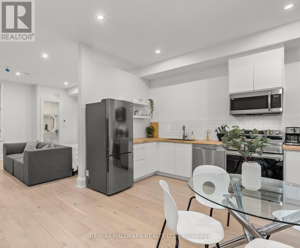 Newer fully furnished loft style apartment in perfect condition with large outdoor space. Includes everything! - electricity,heat,water and internet with TV package. Available for 1 year lease or shorter term options to be negotiated. Just over 700 sq ft. Private entrance. Soaring 10.5ft ceilings. Heated wide plank white oak floors throughout. Modern kitchen with stainless steel appliances. Large open concept bedroom with king size bed. Spa like bathroom with rain shower head,wand and deep soaker tub. Front loading washer & dryer exclusively for this suite. Comes with all furnishings,sheets,towels,pots,pans,plates,coffee maker,just like an Air Bnb. 55" television. Walk out to large terrace that gets decent natural light. Perfect for those coming to Toronto for work,renovating their home or flying the coup lol. Make sure to check out the virtual tour link! **EXTRAS** Permit parking available on street through City of Toronto. (id:52069) ID#: 1479829