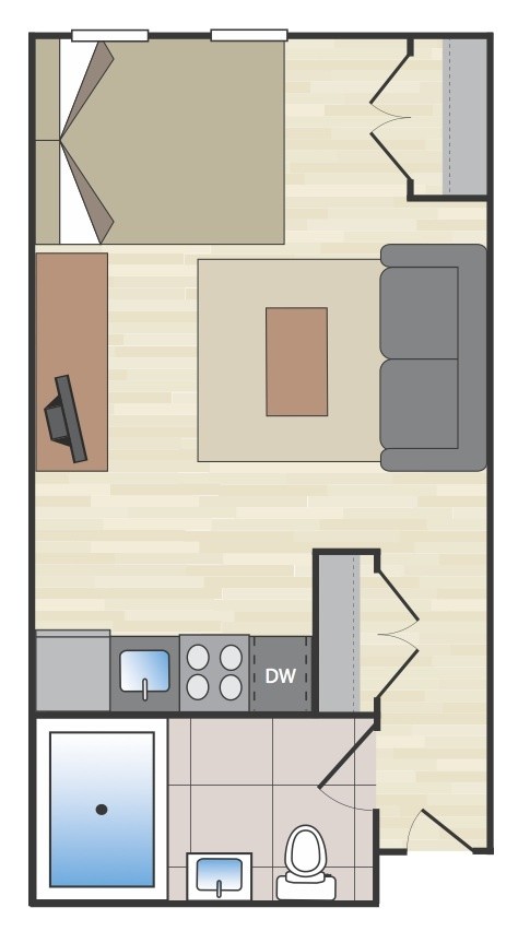 Studio, 1 Bath, 293 sq ftModel Gallery