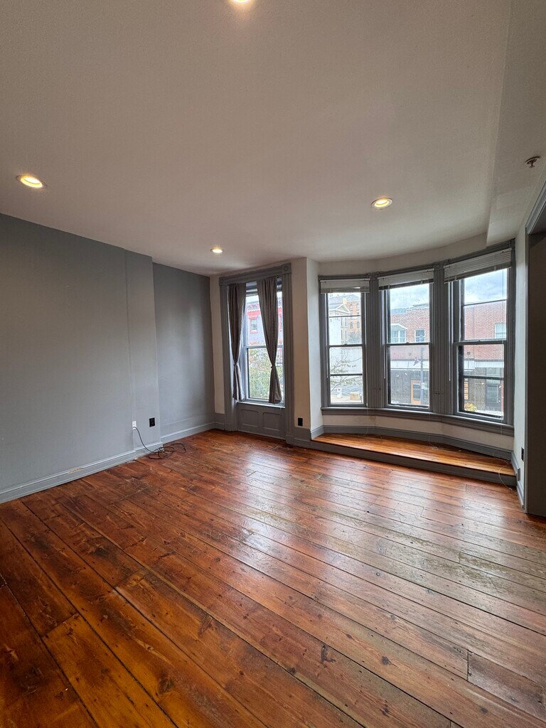 This beautiful unit combines natural light, beautiful bay windows with a breakfast nook, updated appliances, central A/C, and washer dryer in-unit!