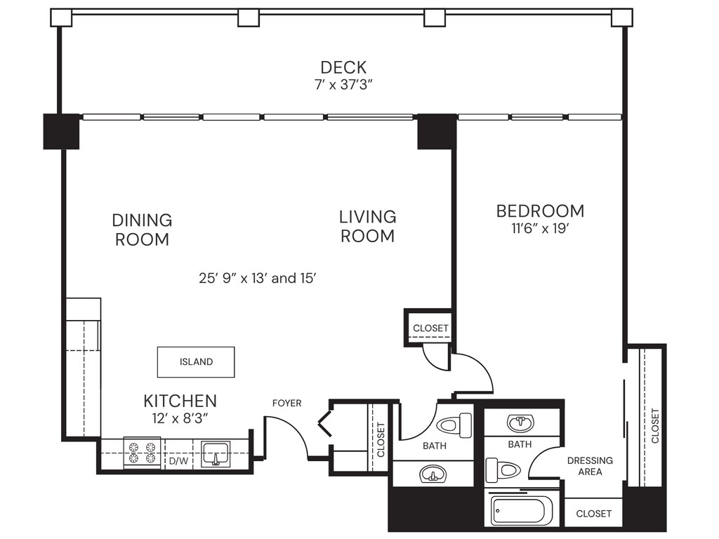 C - Floorplan 1 Apartment Unit: 03CApartment Model: C$4,4951 Bedroom, 1.5 Bath, 965 sq ftAvailable Now2 Bedrooms
