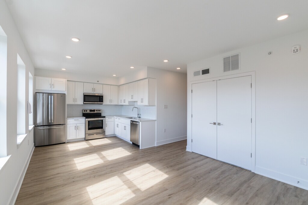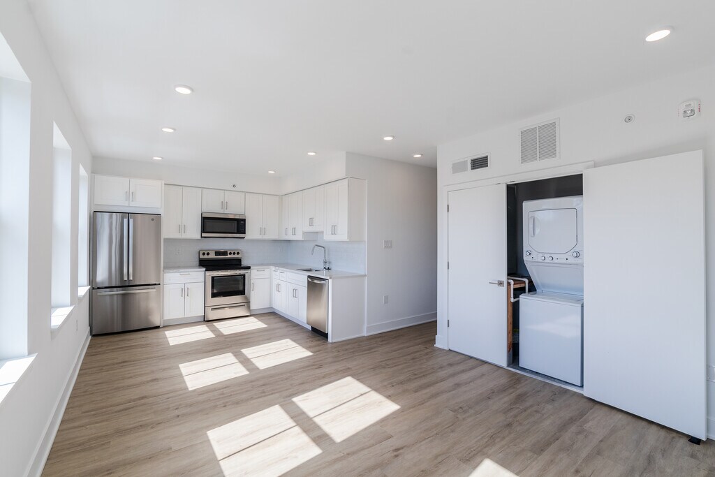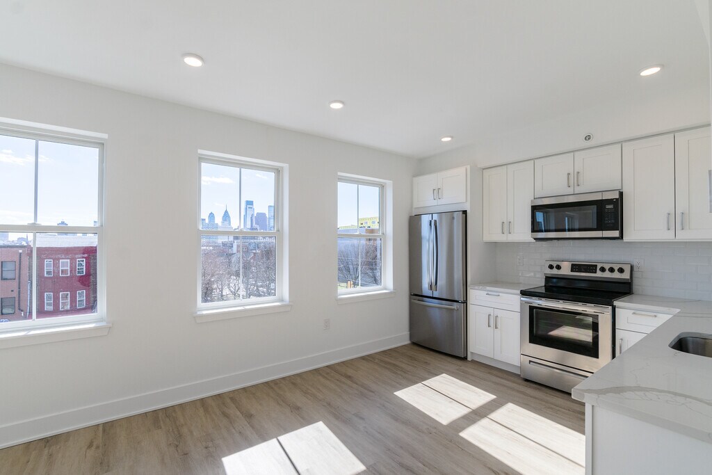Come live in this new 166 unit apartment community in Philadelphia's Yorktown neighborhood. This new construction community is adjacent to one of Temple University's Sports Complexes as well as within walking distance to the University itself. The building features an on-premise parking lot with limited spaces available to rent, 2 shared roof decks with 360-degree city views, elevator service, trash chutes on each floor, a shared bike room, fitness room, resident lounge, and a mail/package room. There are a variety of spacious 1 bedroom layouts that all come with laundry, central AC, and contemporary finishes. The kitchens boast brand new stainless steel appliances including a dishwasher, garbage disposal, microwave, and electric range. The bedrooms are spacious with their own closets, while each bathroom is complete with a slate tiled shower/tub, LED mirror, and modern vanity. Surrounded by public transportation along Broad and Girard for traveling around the city, and in close proximity to bustling neighborhoods like Francisville and Fairmount where popular shops and restaurants are abundant. See this exciting space for yourself and book your tour today! *Application Fees Waived! *Additional lease option available: 2-Month Credit on a 16-Month lease *12 Month Minimum Lease Required, Terms up to 24 Months Available *Pets: 1 dog OK (max 35 pounds), $50/month pet rent required. Sorry, no cats. *Move-in Costs: First month's rent and $500 security deposit required. *Utilities: Resident pays electric usage & water is $60/mo flat fee. *Cable and Internet: Building wired for Comcast and Verizon. *Parking: first come, first serve basis. Limited spots available in on-site parking lot for $100/month.