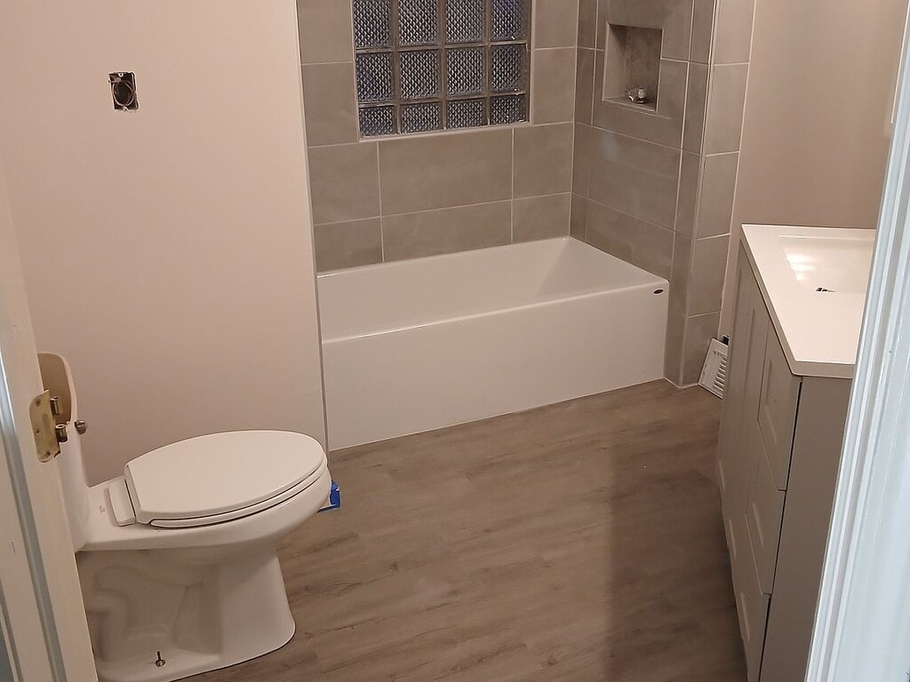 Freshly painted home with new carpeting and flooring in quiet neighborhood. Three bedrooms / one bathroom, just remoldeled. Unfinished basement with washer and dryer hookups. Fenced in large back yard that renter maintains, off street parking for two vehicles, small deck in back. Appliances provided: Gas stove, Dishwasher, Refrigerator, Renter assumes Electric, water/garbage and gas.