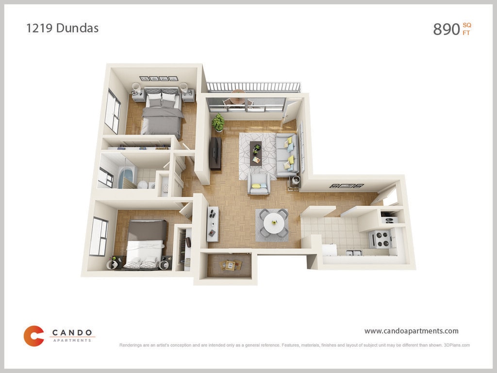 2 Beds, 1 Bath, 890 sq ftAvailable NowModel Gallery