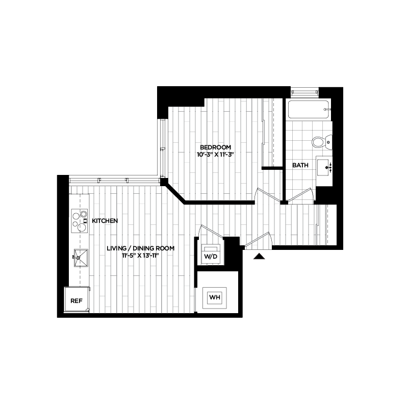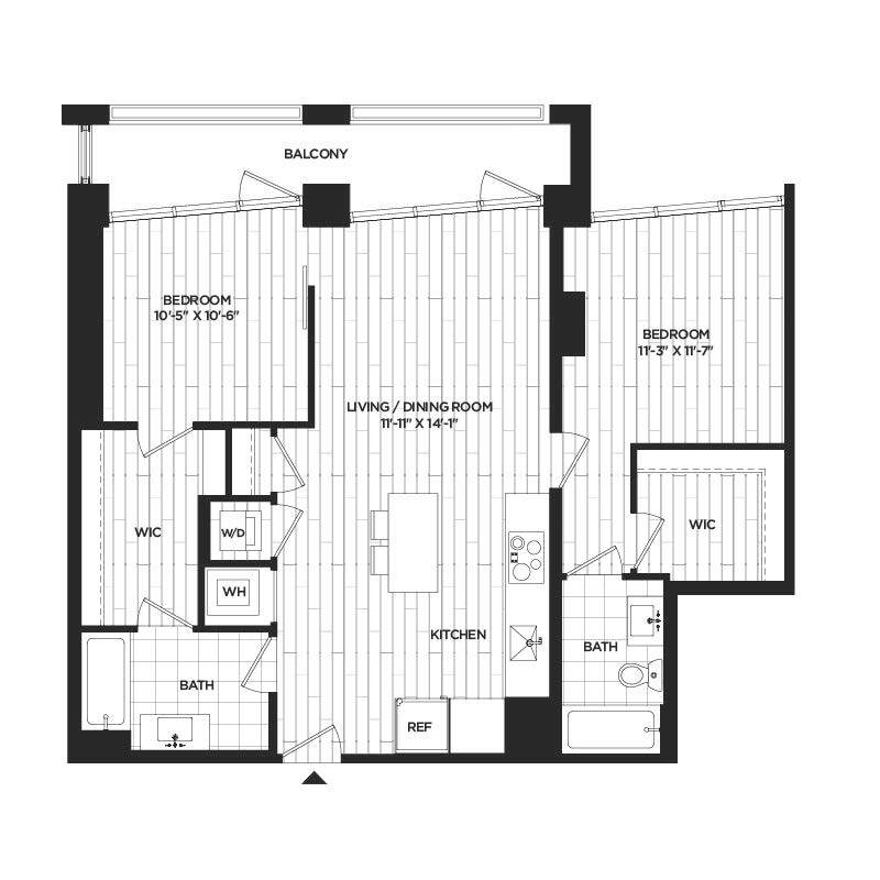 Apartment Model: 1 Bed - 1 Bath | AJ6From $1,8831 Bedroom, 1 Bath, 575 sq ftAvailable Now![]()