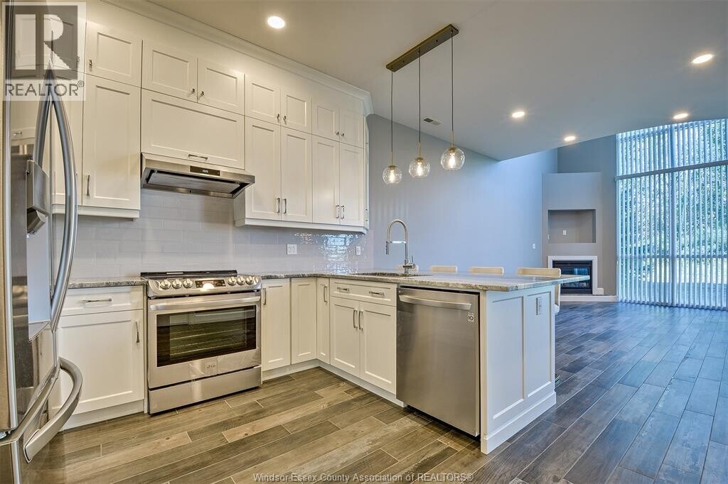 Beautiful and Rare 1.5 story condo in popular Portofino,beautiful style and the latest decor! Foyer opens into open concept kitchen and living room with fireplace and soaring 2nd story ceiling heights. 2nd lvl has stunning primary bedroom with balcony and view of water from it,lavish 5 piece ensuite with heated floors,2nd bedroom also has 3pce ensuite. Main lvl laundry room and this suite comes with one underground parking space. Amenities in building are 2 rooftop terraces,gym,party room,sauna and two guest suites. Across the road you will see a water front park with bike paths and walking trails. Located minutes to Bridge and tunnel to United States also very close to Windsor University. No pets. No smoking. (id:63800) ID#: 1397781
