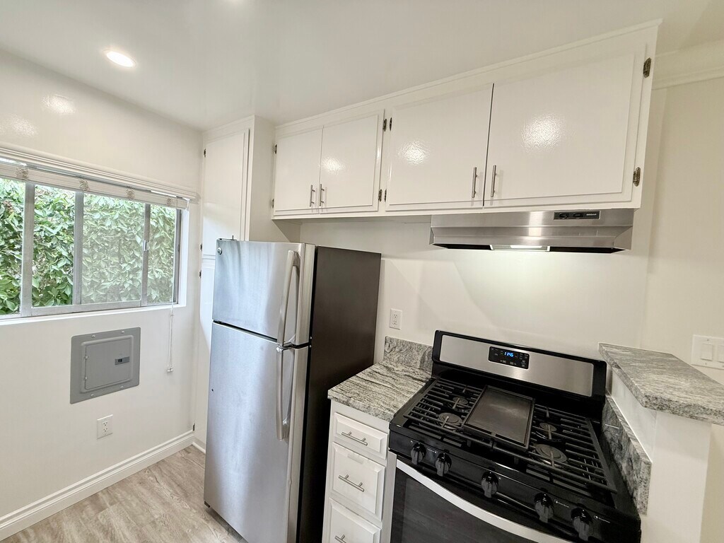 1226 McClellan Dr, Apt. #11 Fantastic Westside location. Brentwood Adjacent. Walk to all Wilshire shops and restaurants. Renovated, Large, Bright, 1 Bedroom 700 Sq Ft. Top Floor, Wood Laminate Floors, New Recessed Lighting, Italian Granite Counter Tops, Stainless Steel Appliances, including Stainless Refrigerator, Gas Stove, Dishwasher, Bathroom, with Art Deco Subway Tiles, New Tub, Vanity, Plumbing for great water pressure, New Crown Molding Freshly Painted With Custom Paint Colors Custom Wood Window Coverings 1 Assigned Covered Parking Space available for $100 Laundry Room on site with Top of the Line Equipment, Gated Building with Intercom Entry. 1 Year lease, No Pets, No Smoking on premises Available to View Daily by Appointment Apply online on our website, vlproperties dot com