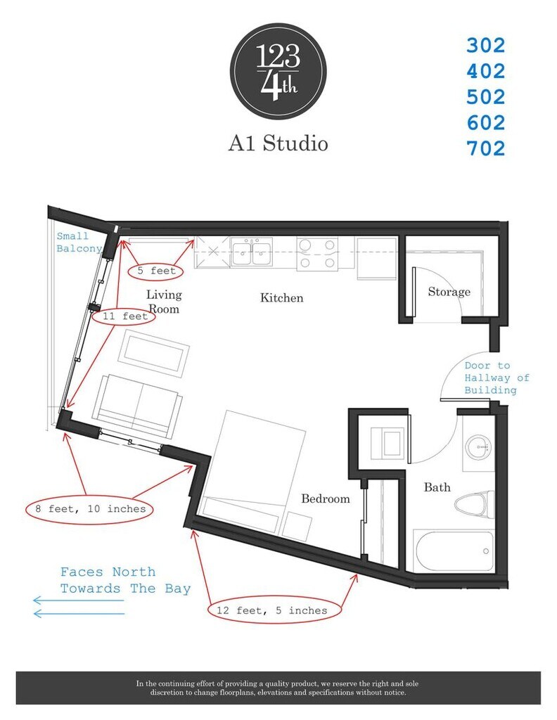 Studio to 2 Bedroom Apartments at 123-4th currently range from $1,255 to $2,125