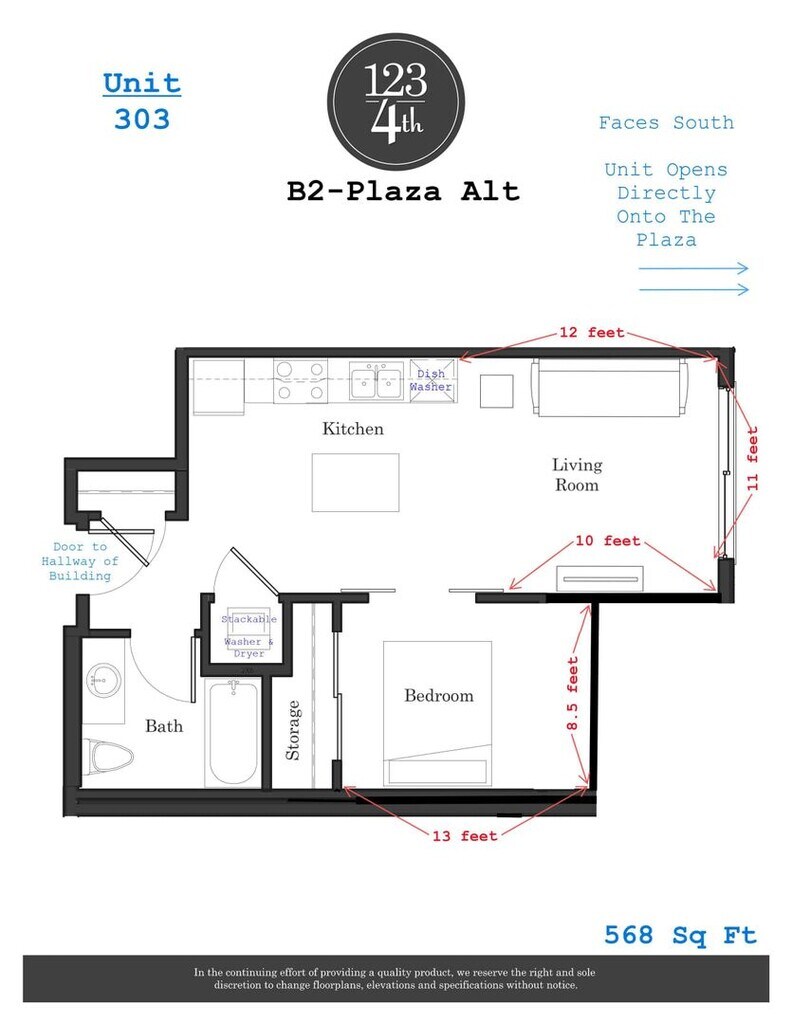 123-4th offers Studio to 2 Bedroom apartments starting from $1,255 and having 394–1,022 sq ft. Here is the current pricing and availability: