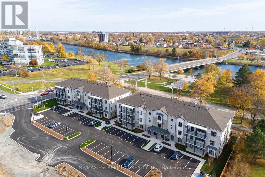 Beautiful views of the Welland Canal! A Boutique building featuring a total of only 15 units! This building has been thoughtfully designed with a fantastic,open concept floorplan with 9-foot ceilings and quality finishes throughout. This unit boasts 2 bedrooms,1 full bathroom and is approximately 950 square feet plus a spacious balcony! Perfect for retirees / empty nesters. Low condo fees! Includes 1 parking spot and 1 storage locker. Stainless steel appliance,quartz counter tops and premium build quality. This spectacular unit is ready for occupancy. Conveniently close to all amenities. (id:52069) ID#: 1994690