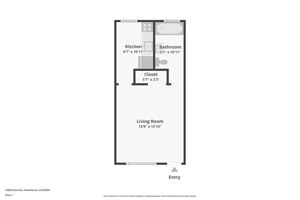1 Bed 1 Bath - 12306 Gale Ave - Floorplan 1 ![]()