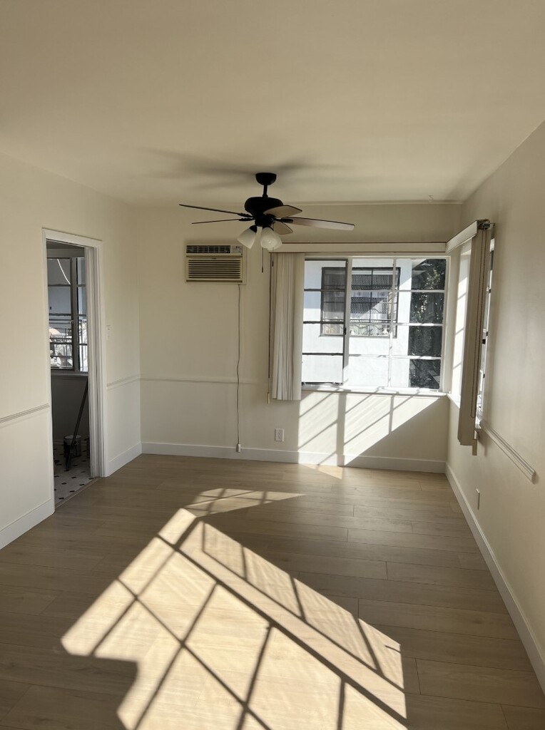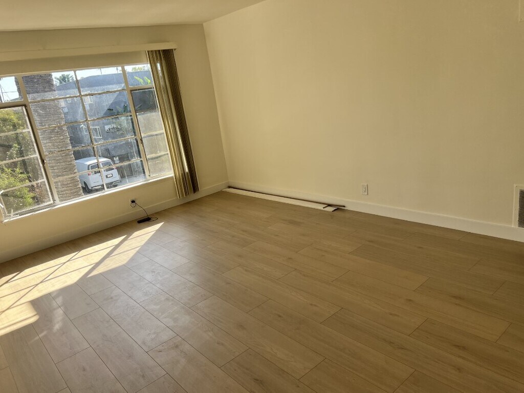 This charming 2-bedroom, 1-bathroom apartment offers approximately 900 square feet of comfortable living space on the second floor of a secure building with a front gate. The unit features a security door for added peace of mind. Inside, you'll find fresh paint, luxury vinyl flooring, and resurfaced countertops that give the space a modern and stylish feel. The new bathroom vanity and ceiling fans add both comfort and convenience. Perfectly situated bordering Plummer Park, this apartment is just steps away from vibrant new shopping, bars, and restaurants. Enjoy the best of both worlds: a peaceful retreat and a prime location for entertainment. The owner pays for water. The tenant is liable for Gas and Electric. One covered carport parking space is provided. One month security deposit is required at signing. No Smoking building. Common Laundry room is available to tenants coming operated. Quiet Building.