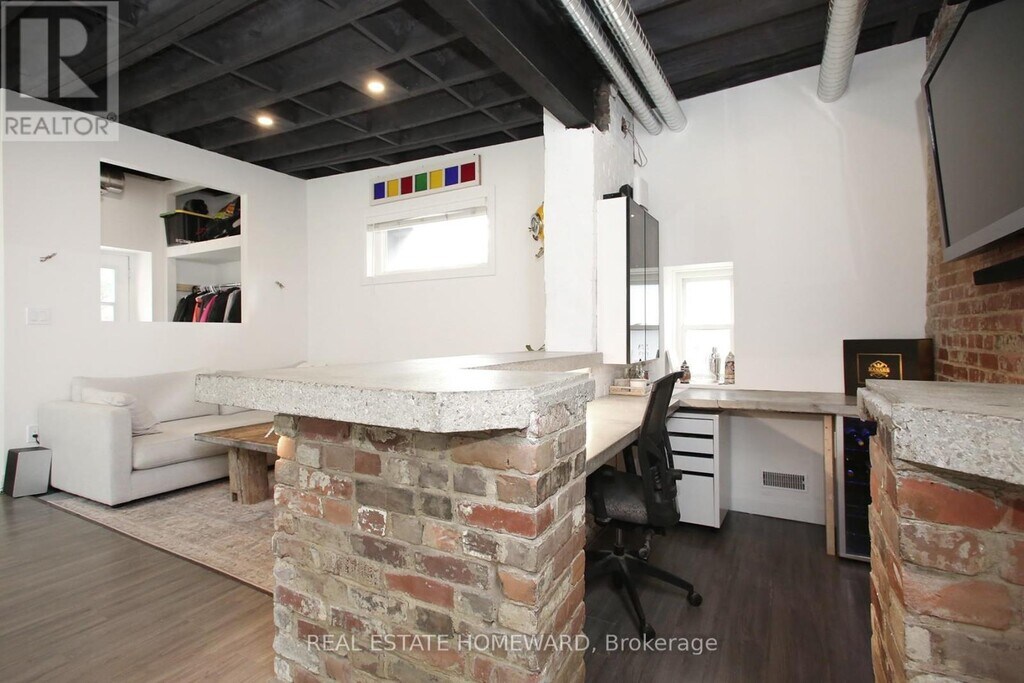 FULLY Furnished - Utilities Included - Parking Included. Unique Loft in the Heart of Leslieville - High Ceilings,Exposed Brick Bar/Office,Skylights & Parking! Step into this one-of-a-kind loft in the vibrant heart of Leslieville-a true gem offering high ceilings,stunning exposed brick,and a charming bar/office nook perfect for work or entertaining. Natural light pours in through 2 skylights,highlighting the open,airy space and unique décor throughout.Enjoy a spacious,flexible layout that invites creativity and comfort. The loft comes complete with one private parking spot and exclusive use of an 800 Sq ft roof top patio! Ample street parking on Dundas for your convenience. Best of all,you're just steps from Leslieville's best shops,restaurants,and cafes,making this the ideal urban retreat.Don't miss out on this exceptional find-where style,function,and location meet in perfect harmony! (id:52069) ID#: 2170008