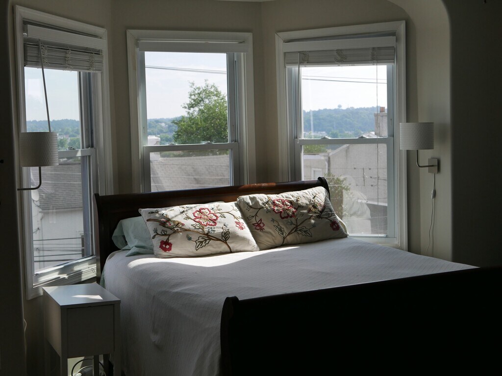 Looking for a great school district? Consider this well-maintained home at the top of a hill in Upper Merion Township, made available for rent on September 5. Routes 202 and 23 are only a few blocks away, providing a fast drive to nearly anywhere in the greater Philadelphia region, including Routes 76 and 276. When you come home, you will enter through an alley behind 7th Street and pull into your 2-car off-street parking. Walk in the back door to feel crisp central A/C and find a full bathroom immediately available on your left. As you walk through the back entrance of the house to the front you probably won't notice the stacked washer/dryer in the mudroom, but when living here you discover that laundry doesn't get more convenient. What you will notice is your beautiful kitchen with stainless appliances, gas stove, granite countertops, and plenty of cabinet space. The dining room and living room are an open floor plan with finished original wood floors, stairs, lots of natural light, and recessed lighting for when you need it. Before heading upstairs, take a look out front. Looking across the porch, you will notice you are standing about 10 feet above street level with a great view. Let's head back inside and up to the 2nd floor. At the top of the stairs, you will find a full bathroom with a double sink, which means no lines at bedtime. The hallway will lead you past your first two carpeted bedrooms to the master bedroom. The master bedroom overlooks Bridgeport and gives a breathtaking view of historic Norristown across the Schuylkill River. And yes, the wardrobe is included. There is plenty of storage in the basement. Insulation and natural gas keep utility costs low.