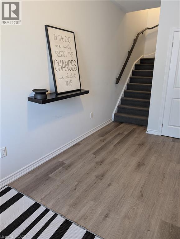 This stunning,spacious townhome is perfect for newcomers,couples,and families alike. Featuring an exceptional layout,this home boasts 2 generous bedrooms with oversized windows,a versatile den ideal for a home office,and 2 modern bathrooms. The upgraded kitchen is a chef's delight,showcasing sleek quartz countertops,a large island with a breakfast bar,and stainless steel appliances,making it perfect for cooking and entertaining. The open-concept living and dining area flows seamlessly to a walkout balcony,your ideal spot for enjoying evening tea or weekend coffee while basking in the warmth of natural sunlight that fills every room. Additional highlights include easy-to-clean premium vinyl plank flooring,cozy carpeted stairs and bedrooms,and practical ceramic floors & quartz countertops in the bathrooms. There is also a large pantry /laundry closet in the Kitchen for added convenience. Enjoy the luxury of a private garage and driveway to park 2 cars,with visitor parking conveniently located right across from your home,making hosting a breeze. The community is unbeatable,with a kids' park just a 2-minute walk away and all essential amenities within a 5-minute drive,including grocery stores,daycare,schools,and Cambridge Memorial Hospital. Plus,quick access to HWY 401 in under 10 minutes saves you valuable time. This townhome combines beautiful finishes with functional design,making it an ideal choice for families or professionals. Don't miss this opportunity to live in comfort and style in a highly desirable neighborhood! (id:52069) ID#: 1967416