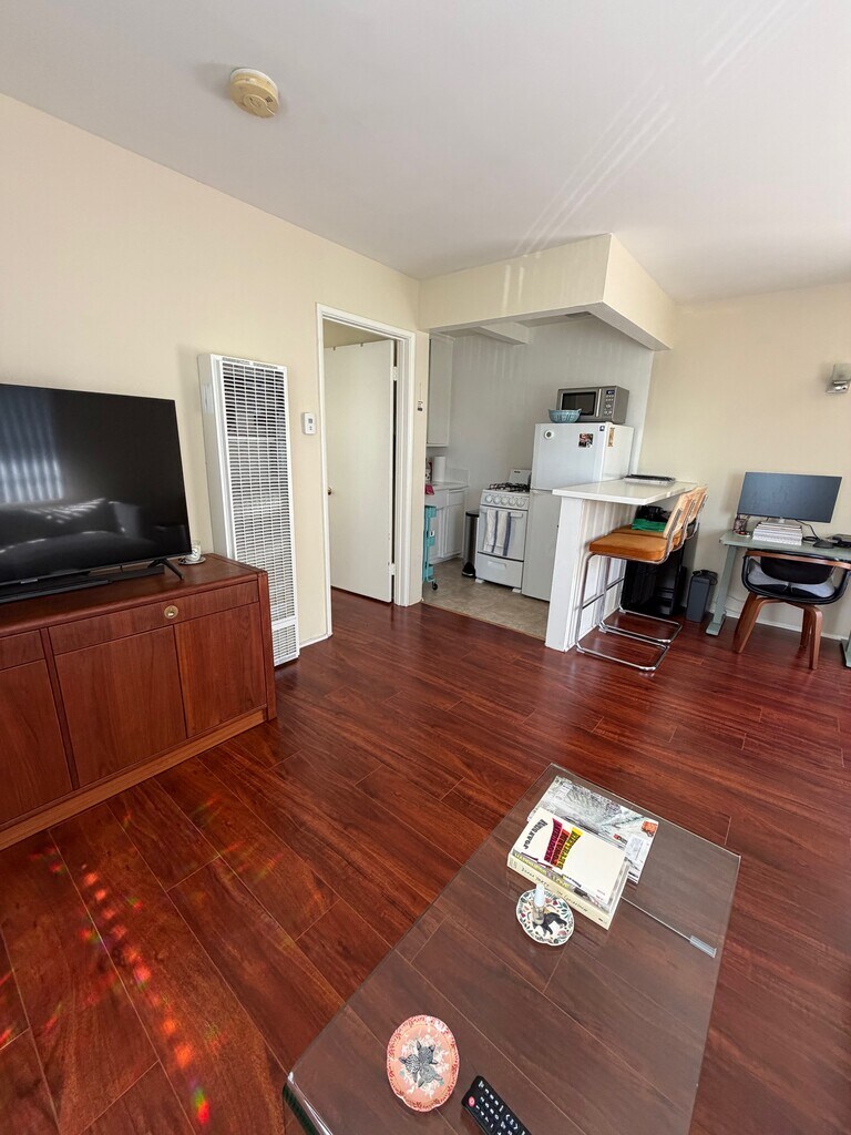 WEST LA - 1/2 block south of Wilshire, between Barrington and Bundy. A mid-century style building offering the city's sunny, car-centric lifestyle (parking provided with unit) yet walking distance to diverse restaurants, entertainment, Ralphs, Literati Cafe, Starbucks, salons, fitness centers, everything you want without having to drive. Affordability nestled amongst newly built luxury units in one of LA priciest neighborhoods. Professional small management company means personal service. Contact us for a showing! These units rent up quickly.