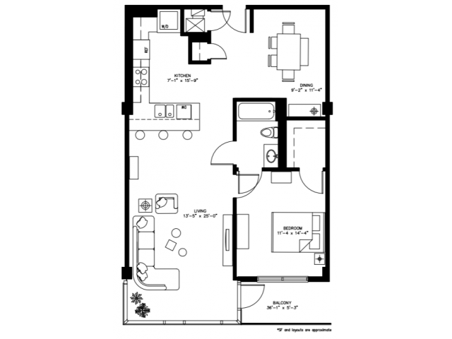 1 Bed 1 Bath - 725 - Floorplan 1 Bed 1 Bath - 755