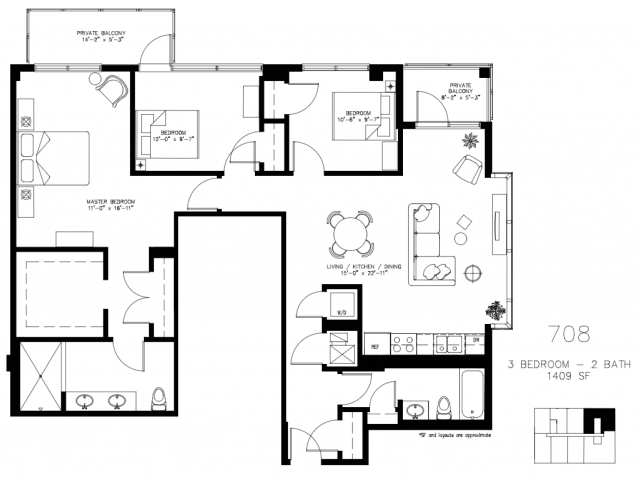 3 Bed 2 Bath - 708 - Floorplan 3 Bed 2 Bath