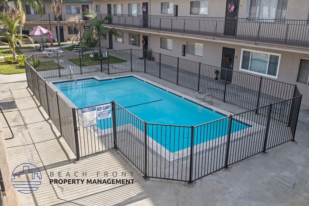 12417 Benedict Ave., Downey, CA 90242 Located at 12417 Benedict Ave., these spacious and modern apartments offer the perfect blend of comfort and style for working professionals in Southern California. With updated amenities, open floor plans, and a variety of community features, this property is designed to cater to the needs of the modern renter. Each unit features an open-concept layout with sleek, wood-style flooring that flows through the living room and kitchen areas, providing a contemporary and cohesive look. The kitchens are outfitted with beautiful white cabinetry, updated countertops, and stainless-steel sinks, making meal preparation both stylish and convenient. Ceiling fans in the dining area add an additional touch of comfort, while the spacious living areas offer plenty of room for both relaxing and entertaining. The bathrooms are updated with new vanities, modern fixtures, and tiled bathtubs, giving them a fresh and polished feel. Bedrooms include ample natural light and closet space, enhancing the overall appeal of the units. The property offers a range of amenities designed to promote a balanced lifestyle. Residents can enjoy a well-maintained swimming pool, ideal for a refreshing dip after a long day. Lush greenery surrounds the central courtyard, creating a serene environment, while picnic tables provide the perfect spot for outdoor meals or social gatherings. The gated entry offers enhanced security, and on-site laundry facilities add convenience to daily life. Situated in a vibrant area of Downey, this property is close to various amenities that cater to the modern Southern Californian lifestyle. Residents will find parks like Furman Park and the Rio Hondo Golf Club just minutes away, offering outdoor activities for all ages. The property is also within close proximity to shopping centers such as Stonewood Center and major thoroughfares, making commuting easy and convenient. Local dining, healthcare facilities, and public transportation options further enhance the appeal of this location. 12417 Benedict Ave. provides a comfortable, stylish living experience in a convenient location, perfect for working millennials seeking a balance of lifestyle and practicality.