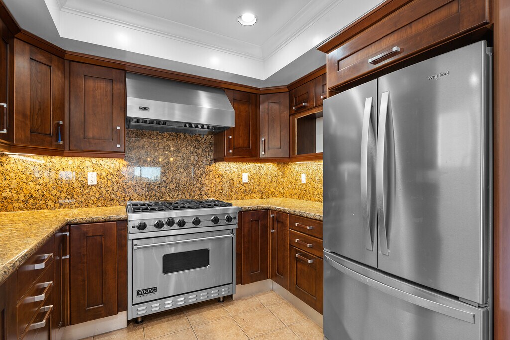 Beautiful bright front west facing corner unit flooded with light and views! This gorgeous unit features 3 bedrooms and 2 1/2 bathrooms, large living room with fireplace, hardwood floors & patio access. Gourmet kitchen with granite countertops, wood cabinets, stainless appliances including six burner Viking range. Spacious dining area. Open floor plan that is great for entertaining and living! Large dramatic primary bedroom suite with walk-in closet, balcony, oversized bathroom with tub & separate shower. The additional two bedrooms are good size and located at the other end of the unit. Laundry inside the unit. Very well-maintained building that the features a community roof deck. Wonderful Westside location!
