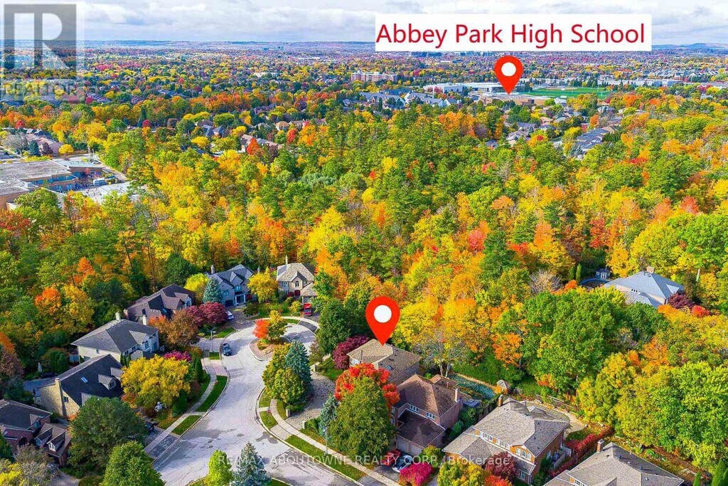 Elegant custom built executive residence backing onto a serene ravine,tucked away in a prestigious Glen Abbey cul-de-sac. Surrounded by nature and offering exceptional peace,privacy,and security,this beautifully updated home features a rare circular driveway and outstanding curb appeal. Fully renovated in 2023 with brand-new windows,it showcases a bright,spacious chef's kitchen with granite countertops and a sunny breakfast area. Refined details such as elegant crown moulding,a central vacuum system,and a fully finished basement enhance its comfort and sophistication. Ideally located within walking distance of top-rated schools,this property offers a rare opportunity to live in a grand mansion at one of Oakville's most sought-after neighbourhoods. (id:52069) ID#: 1892313