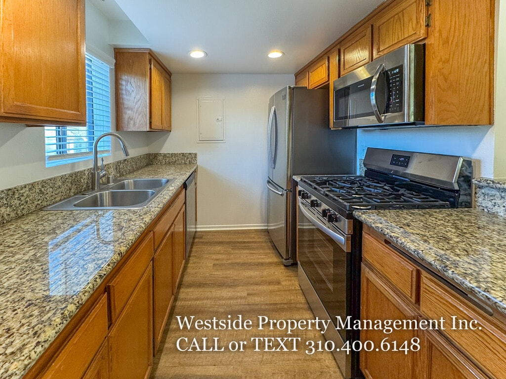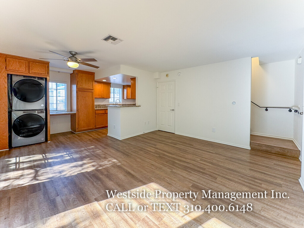 Introducing a modern 2-bedroom, 2-bathroom townhouse style apartment in the vibrant Mar Vista. This unit features an open living space, bright natural light. Kitchen is galley style, appliances include stove, fridge, dishwasher and stacked washer and dryer, large sliding glass doors leading to the private balcony. Upstairs you'll find the two bedrooms, each spacious with private bathrooms. Take in breathtaking views of the city from the private rooftop deck. Tenant pays all utilities, no pets, tandem parking. **Promo $500 Visa gift card With signed lease!