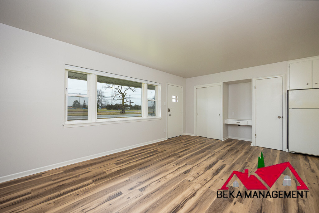 Riverview apartment (Pennsylvania and Fort) with laminate floors, close parking and on site laundry. Large living room with extra closet space. Large kitchen with lots of cabinet and counter space. Appliances include refrigerator, stove. Window AC. Common laundry available. Parking right out back door. Close to shopping, restaurants, freeway, downtown Wyandotte and Detroit River waterfront.