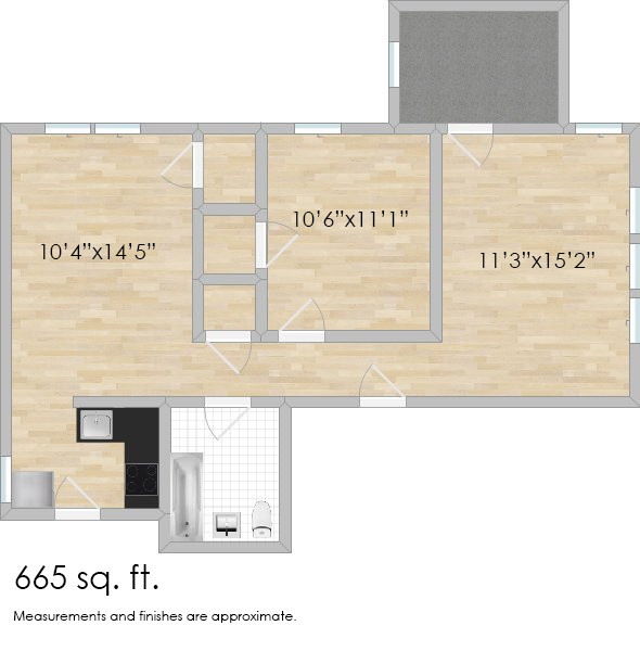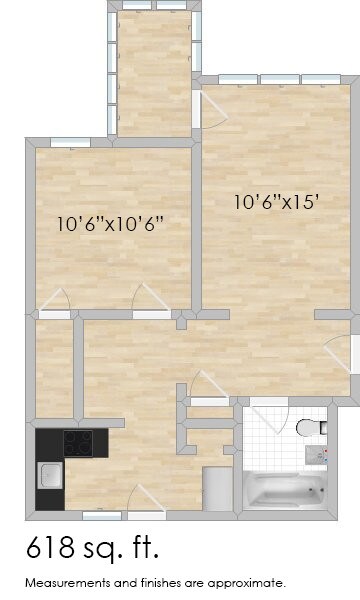 1 Bed, 1 Bath, 580 sq ftModel Gallery