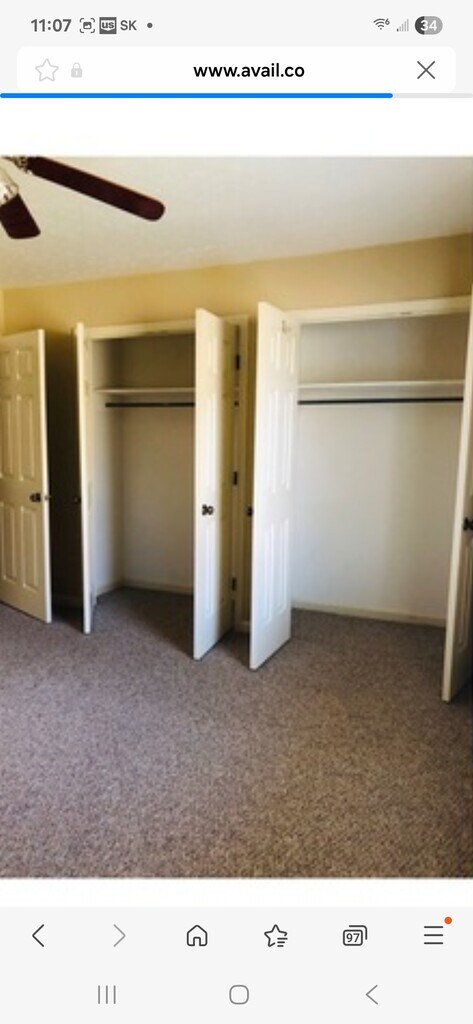 Large 2-bedroom duplex for lease. Has lots of closet space. Neutral paint, blinds on all windows and bedroom ceiling fans. New flooring throughout will be installed before occupancy. Eat-in kitchen and a washer/dryer hookup. Gas heat, fireplace, and water heater with central AC. There is also a sink/vanity area in master bedroom. Large back patio with exterior locked storage area. Lawn maintenance is included with rent. Tenant pays for all utilities.