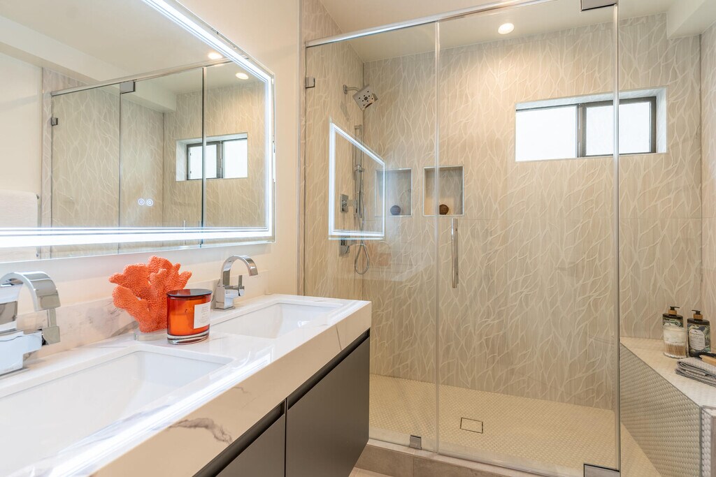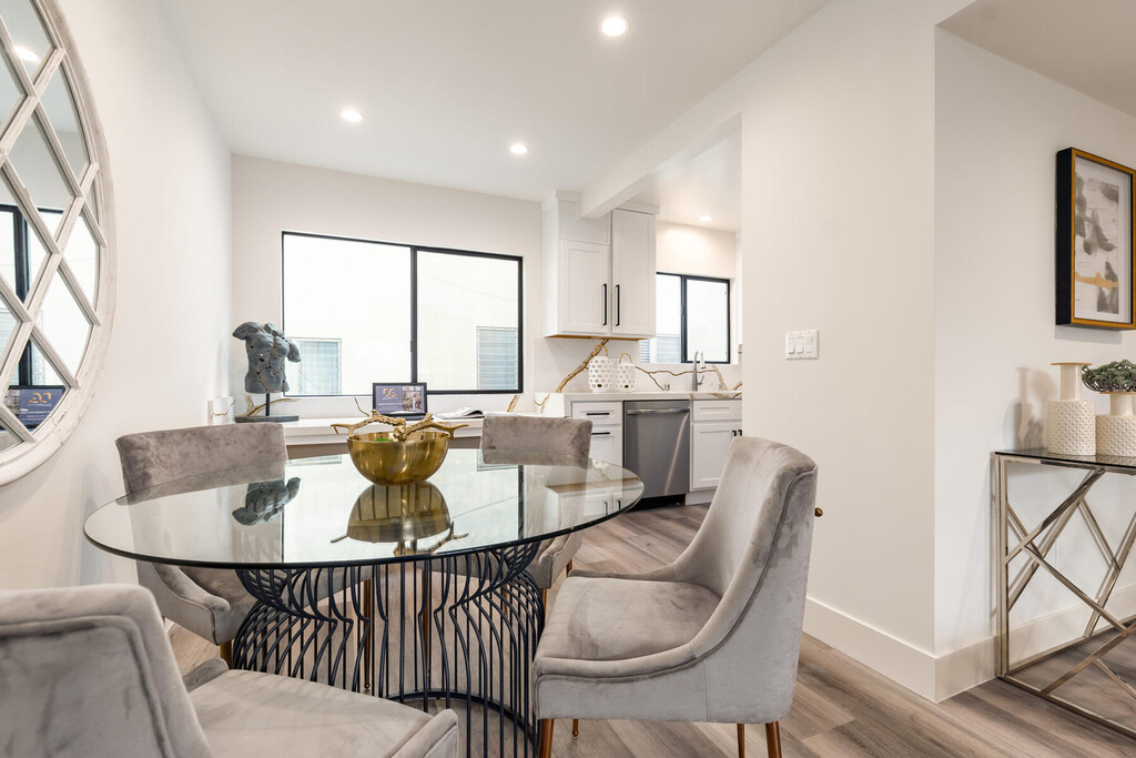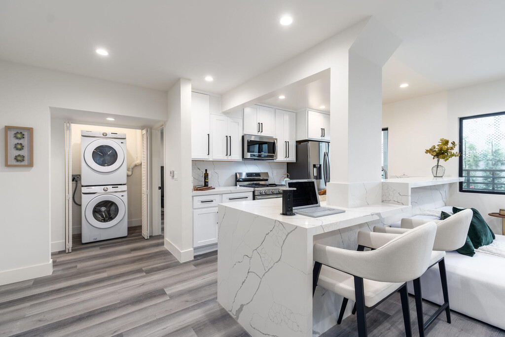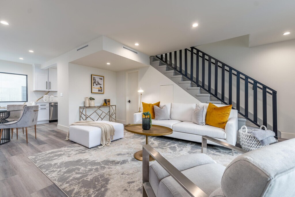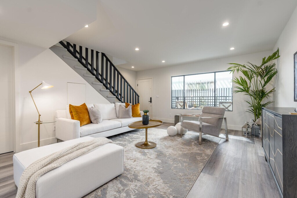 1262 Sweetzer sits nestled on the idyllic tree-lined street of Sweezter just south of Fountain. Location is truly everything and this hideaway is in the heart of West Hollywood. Each unit is a celebration of true boutique luxury- concentrating on luxe modern style and design, while keeping functionality in mind. This is a one-of-a-kind opportunity to live in a fully renovated secured 2bed/1.5 bath townhome. This townhome features a large private, gated front patio-perfect for alfresco dining and lounging. No detail was forgone when reimagining this home. The modern kitchen flows effortlessly into an open concept dining and living spaces. Kitchen is equipped with marbled quartz countertops, designer cabinetry, and stainless-steel appliances. The kitchen counter seamless stretches wall to wall offering a perfect at-home work space, equipped with a hidden pop-up USB/charger station. Powder room on lower level. Chic light grey flooring throughout and recessed lighting in addition to the flood of natural light make this unit bright and airy. As you move upstairs, you are welcomed by 2 spacious bedrooms, one offering its own private balcony. Spa-like bathroom with double vanity and walk-in shower with built-in shower bench offers room to relax and unwind. Washer and Dryer ideally located on the second level. Ample storage throughout. Gated parking. Garage and building secured with exterior surveillance and gated access. EV car charging ports. Situated as central as it gets in Los Angeles you are just moments from finding the best of all worlds at your fingertips. From world-class shopping, vibrant nightlife, celebrated dining havens, to the best culture and entertainment of West Hollywood and The Sunset Strip. Welcome to a new standard of urban living.