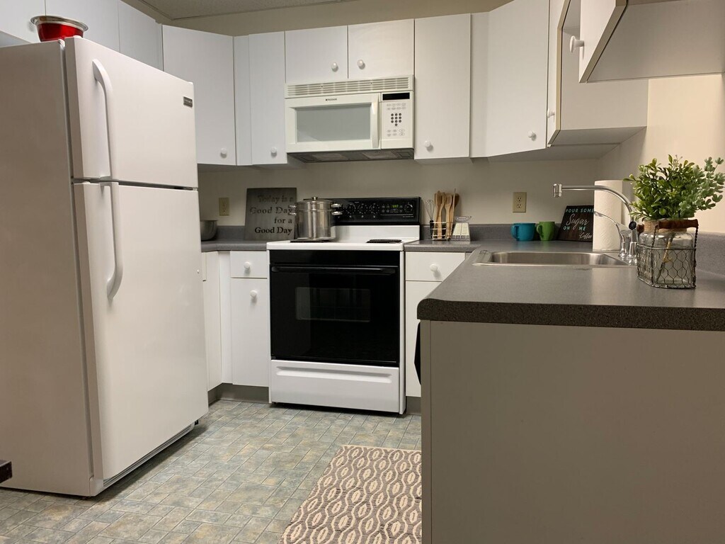 3 bedroom, 2 bathroom apartment. Located on the westside of campus with an easy walk to both campus and downtown. Spacious living room & kitchen areas. Includes convenient access to the laundromat - it is just steps away from your front door. Rent includes: Internet, trash/refuse, water/sewer, lawn care and snow removal, and 24 hour emergency maintenance. Utilities not included: Electric and parking. Parking available onsite for an additional cost. Heating is Electric. Furniture included may vary. Maximum occupancy: 4 people.