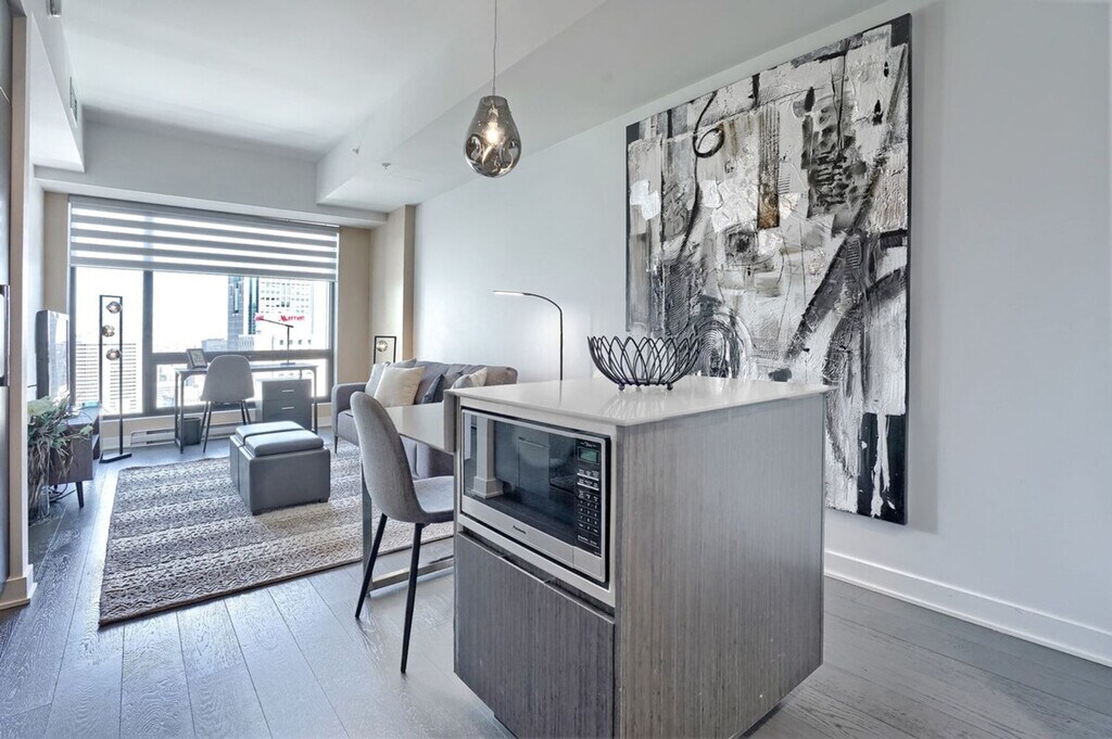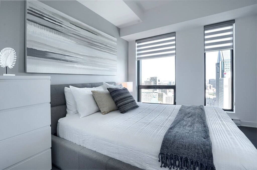 Welcome to a luxurious high-rise in downtown Montreal offering breathtaking city views. Indulge in a spacious unit with one bedroom, one full bath, a private balcony, and expansive 10-foot ceilings that invite natural light through large, sunny windows. This property boasts high-end finishes throughout, coupled with a suite of top-tier amenities. Conveniently located mere steps from Lucien l’Allier metro station, train access, and the underground Montreal network. After visiting some exceptional apartments ourselves, we've strived to make this apartment as welcoming and cozy as we possibly could for our guests. This space welcomes 2 guests. It has 1 bedroom with a queen bed and a full bathroom. Enjoy a Smart TV for your viewing pleasure and stay seamlessly connected with high-speed Wi-Fi throughout your stay. Indoor parking with in and out privileges is available for a separate fee depending on your length of stay. We offer a variety of cleaning services that include biweekly or monthly for an extra charge. Built in 2016, this apartment is in the heart of downtown Montreal with security 24/7. Enjoy a fantastic terrace with swimming pool and BBQ grills, a fitness center, sauna and rain room, and many entertainment rooms. Just steps away from the metro station Lucien l’Allier, train and the underground Montreal network. No parties of any kind or loud noises that can alter the harmony of residents are allowed. No smoking of cannabis, cigarettes, or any kind inside the apartment, balcony, or the building. Care for your home away from home.