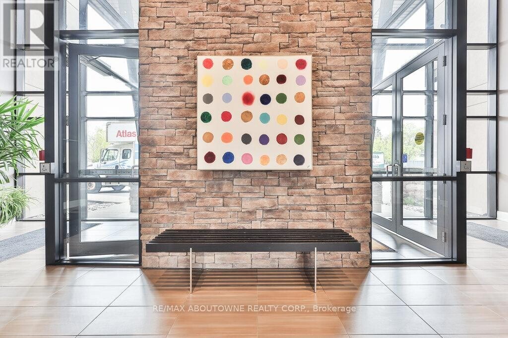 Stylish Condo Living Just Minutes from Downtown Oakville! Welcome to this bright and contemporary 2-bedroom,2-bath end-unit condo ideally located near the lake and just a short stroll from vibrant downtown Oakville. With no neighbour on one side,enjoy enhanced privacy and quiet. Featuring an open-concept layout and elegant design touches,this unit offers comfort,convenience,and a relaxed urban lifestyle. The spacious living and dining area opens to a west-facing private balcony with unobstructed views over a manicured private school field,complete with a gas hookup for your BBQ,perfect for outdoor entertaining.The sleek kitchen is both stylish and functional,featuring Super White granite countertops,a Blanco stainless steel undermount sink,stainless steel appliances,and ample cabinet space. Both bedrooms are generously sized,and the bathrooms include upgraded cabinetry,adding a refined touch. Additional highlights include in-suite laundry,one underground parking space,and a storage locker for added convenience.Enjoy boutique building amenities like a fully equipped fitness centre,party room,lounge,and a rooftop terrace with beautiful views. All this just minutes from Oakville's waterfront,trails,parks,shops,restaurants,and GO transit. Whether you're a first-time buyer,investor,or looking to downsize,this home combines comfort,style,and a prime location.Extras: Torlys Terrawood satin-finish flooring in Trend Driftwood,stainless steel fridge,stove,built-in dishwasher,microwave,stacked washer/dryer,Hunter Douglas blackout + sheer blinds,and window coverings. (id:52069) ID#: 1421934