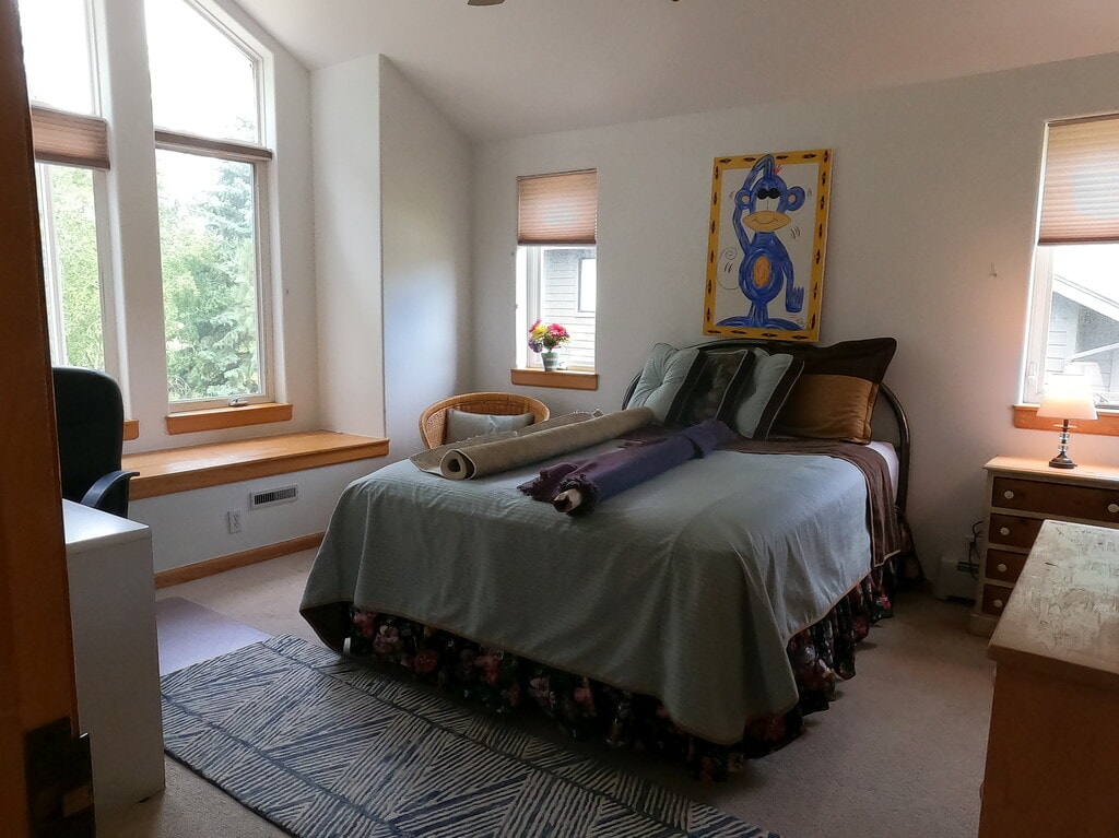 A spacious, furnished bedroom with a private bath is available in the Old Edwards neighborhood and available on October 25th. The room features a double bed with a newer mattress, dresser, side table, desk with chair, table lamps, accent chair, and area rugs. Rent is $1,400 per month and includes all utilities, such as gas, electricity, water, trash, wi-fi, and satellite TV with Roku streaming. Additionally, one driveway parking space is included. There's a $75 monthly housekeeping fee in addition to the rent. Upon signing, a minimum 12-month lease* and the first, last, and damage/security deposit are required. (If seeking a shorter term lease? Let's talk.) The upper floor has two rental units and a loft. The owner has private quarters on the main floor. So there is plenty lot of privacy. The main floor is where you will find the common area with a fully equipped kitchen, pantry, kitchen island, bar seating, gas stove, and all cooking, serving, and eating essentials. The kitchen is food-service clean and all users are expected to keep it so. On the main floor is a furnished living room with plenty of seating, a gas fireplace, satellite TV with Roku, stereo, landline telephone, dining table & chairs, sunroom, and laundry room with a new washer and dryer. Additional food storage (refrigerator and freezer) is available in the attached garage. Outside grounds include a fenced yard, hot tub, deck, patio dining & seating, grill, compost, and garden beds if you're into growing vegetables. There is a fire pit for marshmallow roasts and star-gazing evenings. The remaining grounds include south a facing front porch with seating - great for morning coffee, a lawn area, flower gardens, a path to the Eagle River, and neighborhood open space and a pond for fishing and personal meditation. We work hard to be a sustainable household where we recycle, compost, and conserve. No pets. Covid-free and smoke-free home. The Old Edwards location is ideal for walking to Colorado Mountain College (CMC), Berry Creek, Miller Ranch, Edwards Riverwalk, Edwards Medical Center/Campus, the movie theater, and shopping. The bike path that leads to just about everywhere in Eagle County is at the end of our block and it's just 11 minutes to walk to the bus stop. If this sounds good, contact me via email or phone to arrange an immediate tour. Please include your email and phone number and who you are. I will reply to messages throughout the day if you leave a number. My phone is a LANDLINE. No text. It's a great place for the right person on the Eagle River. I will reply to messages every morning and evening.