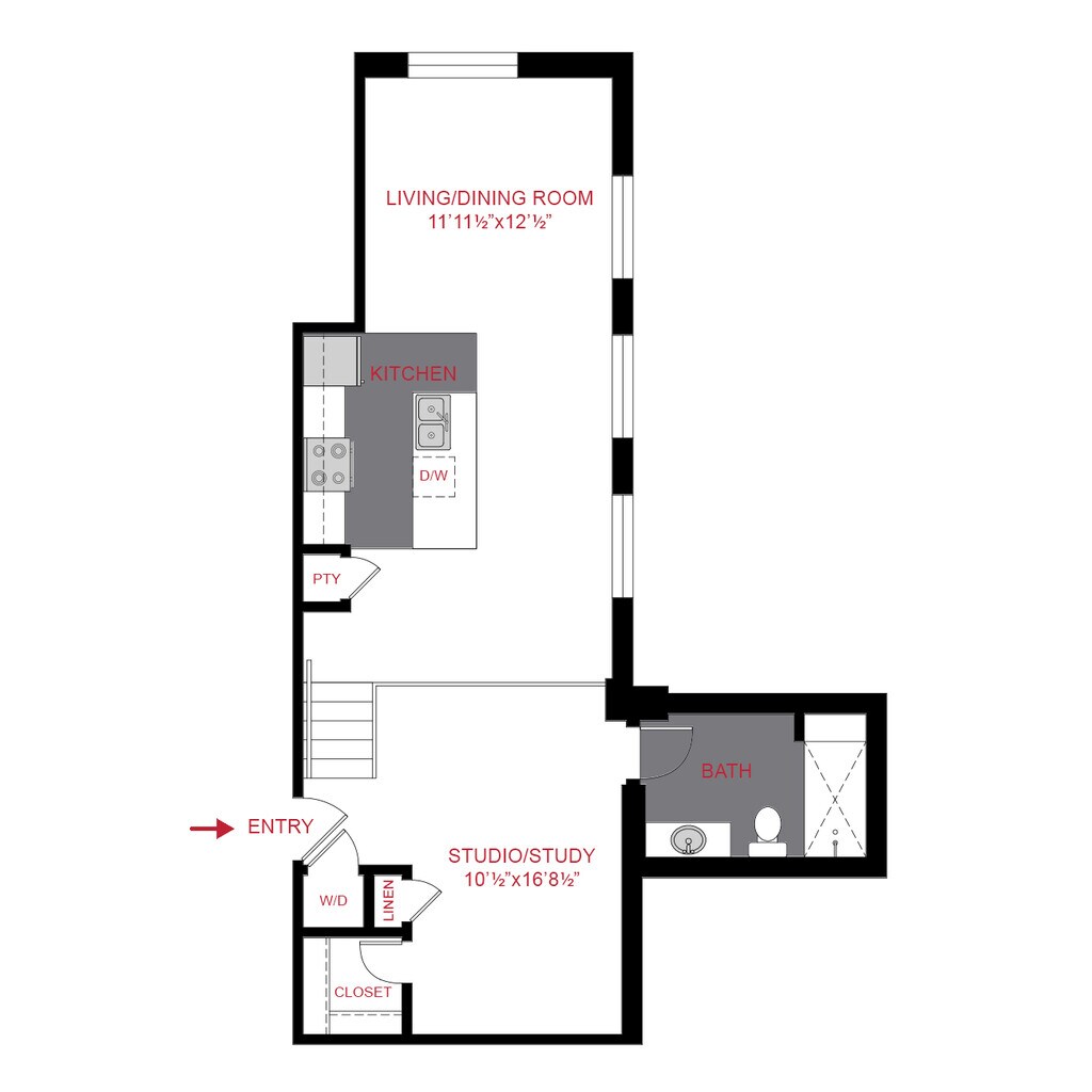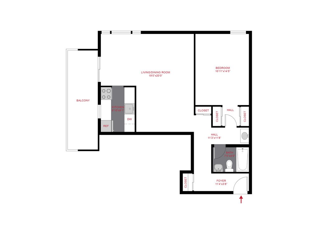 One Bed One Bath A5 - Floorplan 1 1 Bed 1 Bath A1