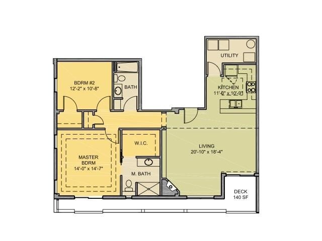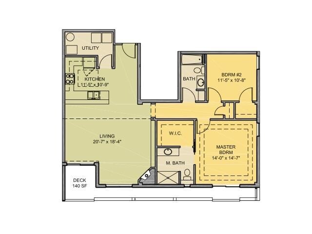 2 Beds, 2 Baths, 1400 sq ftLargest 2 BedroomThis is the largest 2 Bedroom at this PropertyModel Gallery