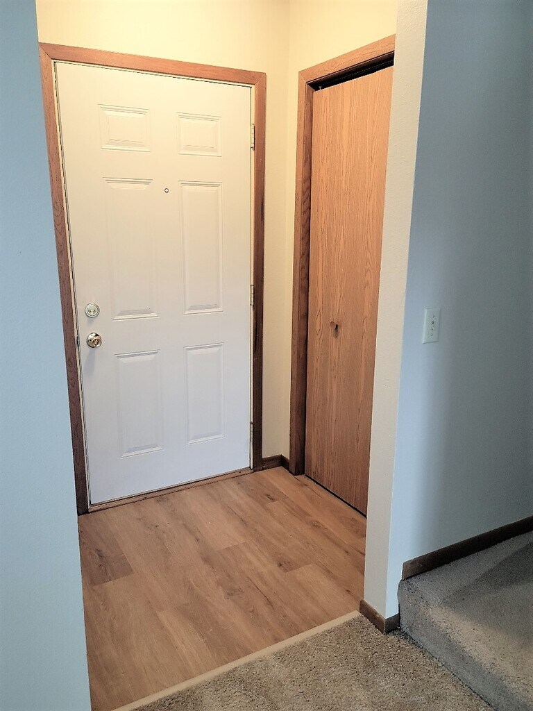These spacious 2 bedroom, 1.5 bath apartments feature two levels. This 6-unit building is located in a quiet neighborhood. Units feature large living rooms, eat in kitchen, powder room and laundry on the main floor. Both bedrooms and full bath are located on the upper level. Each unit has a stove, fridge, dishwasher, microwave, window a/c and washer/dryer. Includes a one-car detached garage stall. Tenants pay all utilities plus a $30 monthly trash fee. Lawn care and snow removal from lot included. Tenant maintains snow removal from sidewalk and patio.