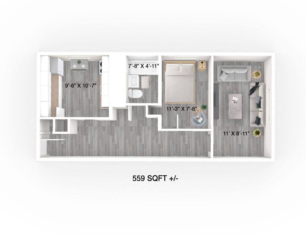 1 Bed, 1 Bath, 559 sq ftAvailable February 1, 2026Model Gallery