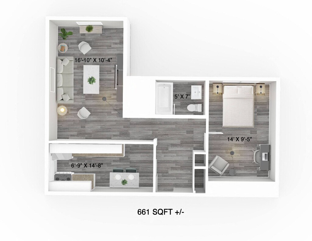 1 Bed, 1 Bath, 661 sq ftAvailable January 1, 2026Model Gallery