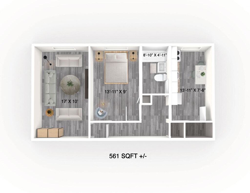 1 Bed, 1 Bath, 561 sq ftModel Gallery
