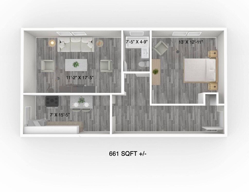 Apartment Model: 129 Lenore - 1 Bedroom, 1 Bathroom - Layout B1 Bedroom, 1 Bath, 661 sq ftAvailable January 1, 2026![]()