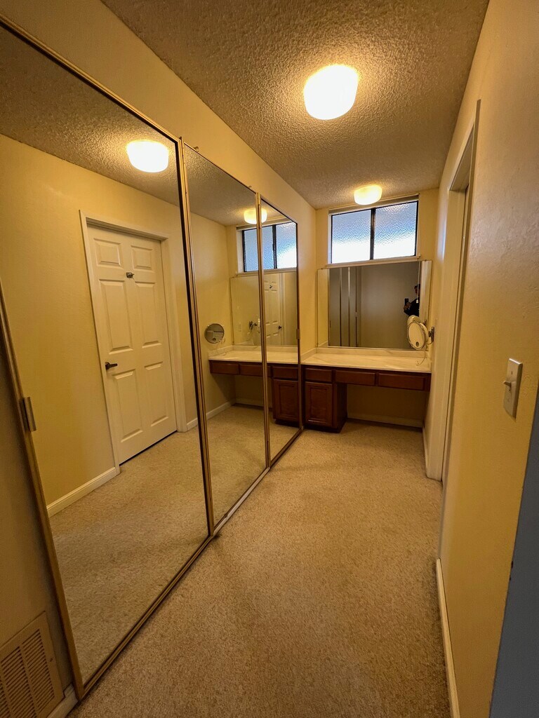 This 1800+ square foot condo is located on the 3rd/top floor at 1290 Sharon Park Drive behind a gated entrance and down a redwood-lined drive, set in an "island" surrounded by the Sharon Heights golf course. The property is beautifully landscaped and includes a clubhouse and large swimming pool with spa. Features: 2 bedrooms Formal entry Spacious living room with fireplace and adjacent dining room Kitchen with informal dining area Covered outdoor patio Primary bedroom with two large walk-in closets and access to the outdoor living space Primary bathroom includes two sinks, shower and separate tub Second bedroom includes bay window with seating area and large walk-in closet Guest bathroom has shower/bath. Large separate laundry room. A/C Two dedicated underground parking spaces and one large private storage room. Elevator. Association fees (water, garbage, recycling, elevator, pool/spa and clubhouse access) are included in rent. 1 year lease minimum. NO SMOKING NO PETS