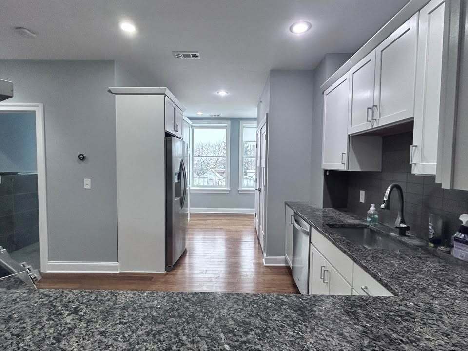 Absolutely beautiful spacious 2 bedroom apartment with 1.50 baths. Located on the 3rd floor in a historic building. Granite counter tops, soft close cabinets, and stainless steel appliances. 4 units share a roof top balcony. No Dogs. Gas heat and central air conditioning. No smoking on the property. Doctor's offices on the main level. Keyless entry, intercom system, and sprinkler systems. Bamboo flooring, coffered ceilings in the staircase, and tray ceilings in the unit. This unit will not disappoint. Call to schedule a showing.