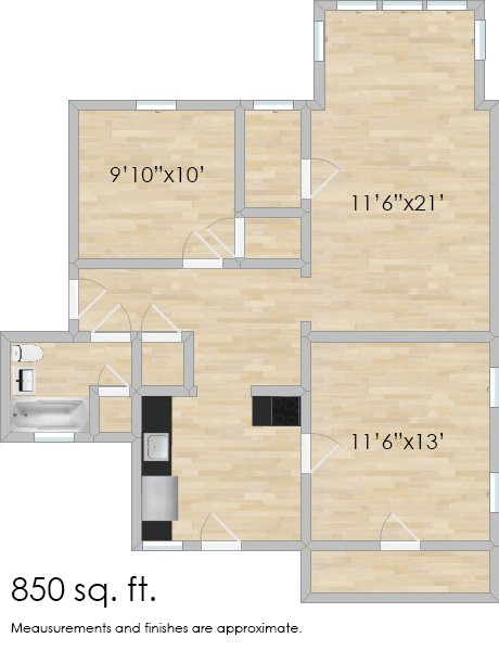 132-140 N. Humphrey Studio - Floorplan 1 1 Bedroom
