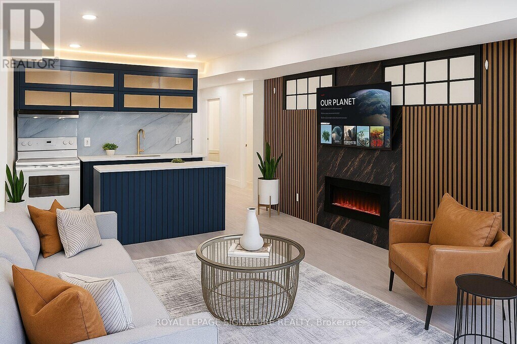 Welcome to a rare walk-out suite that feels like your own private main-floor apartment. Step into a beautifully renovated space where the living room opens directly to a serene ravine backyard - perfect for morning coffee,evening relaxation,or enjoying nature right at your door. This bright and spacious layout features 2bedrooms + a versatile den that works perfectly as a home office or cozy breakfast nook. The modern living area with an electric fireplace adds warmth and elegance,creating the ideal place to unwind. Thoughtfully updated throughout,this unit offers comfort,privacy,and a lifestyle that's hard to find in a basement apartment. Enjoy your own dedicated laundry,separate hydro meter + 30% of other utilities,and two tandem driveway parking spaces. A must-see for tenants who want space,style,and a ravine retreat to call home. (id:52069) ID#: 2036408