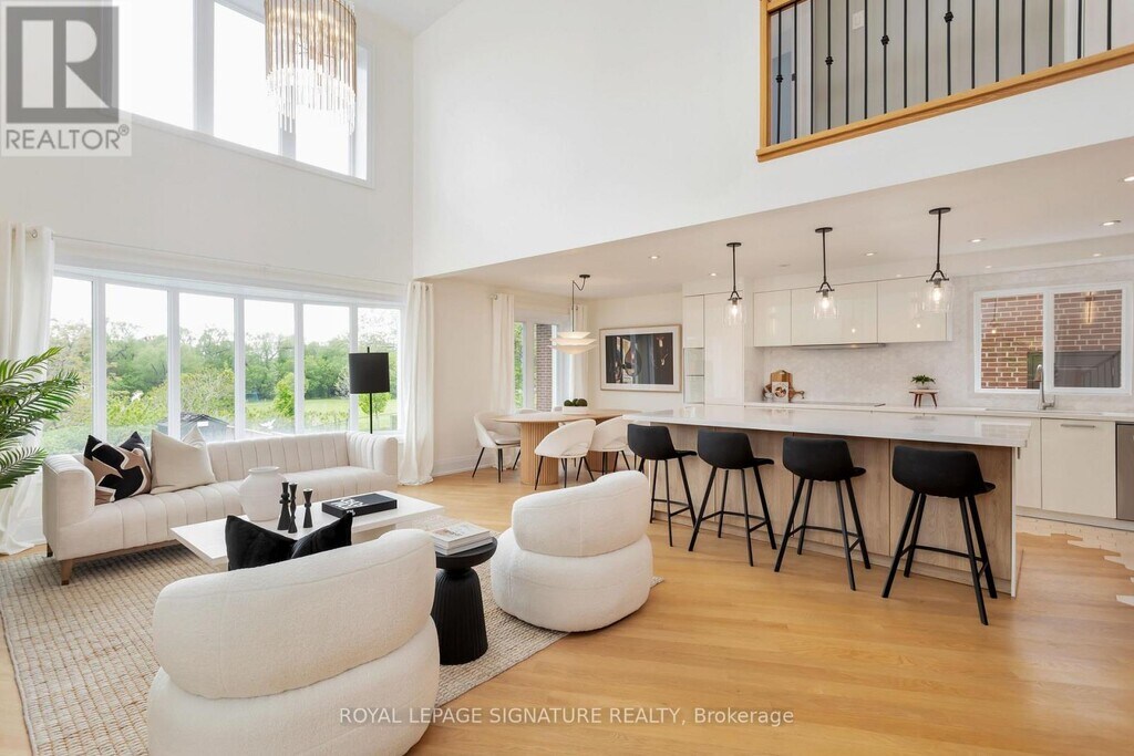 Life's better on Saturn! Why settle for ordinary when you can have a house that is out of this world? This 5 bed,5 bath custom built home is perfectly situated on a 74 X164 lot backing on to green space,with a solar heated,salt water swimming pool,turfed Playground,and 2 outdoor patios with composite flooring,all surrounded by greenery and privacy (and a cherry tree that you can pick right from your patio seat!). Indoors you will be greeted by a nearly 19ft ceiling in the great room. Windows on every wall ensure this space is sun drenched. The kitchen is a custom German Leicht build,with smart storage solutions,and possesses a steam oven and In sinkerator. Diagonally laid hardwood playfully transitions to a modern hexagon tile in the kitchen. Gas and electric heated fireplaces will keep you warm in the winter months,but if that's not enough,the home has a Sauna with health-benefitting infrared or traditional rock heating. A main floor bedroom with ensuite is perfect for anyone with mobility issues or for guest. Upstairs,the primary bedroom is tucked away on its own floor. The Garage offers two parking spots,epoxy floor & EV Charger. W/O Basement,3 under deck storage. So much more! 20 minutes to DT core,10 minutes to Pearson International Airport. W/in coveted St Clements Catchment area. Walk to Etobicoke Farmers Market! (id:52069) ID#: 2102840