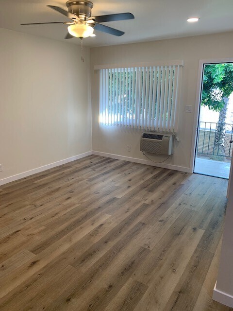 12 unit apartment complex in a quiet residential area. Completely upgraded 1 bedroom apartment. On site washer/dryer; beautiful courtyard; single covered parking space Please call; do not email.