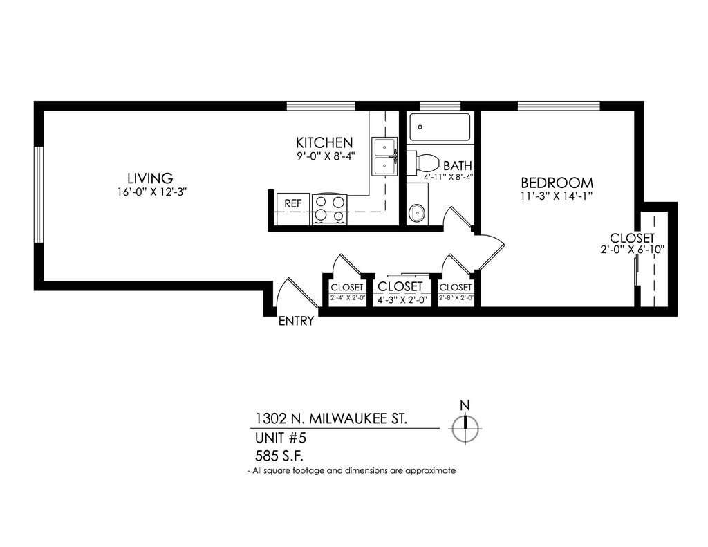 1 Bedroom - Floorplan 1 Apartment Unit: 05Apartment Model: 1 Bedroom1 Bedroom, 1 Bath, 585 sq ftAvailable Now![]()