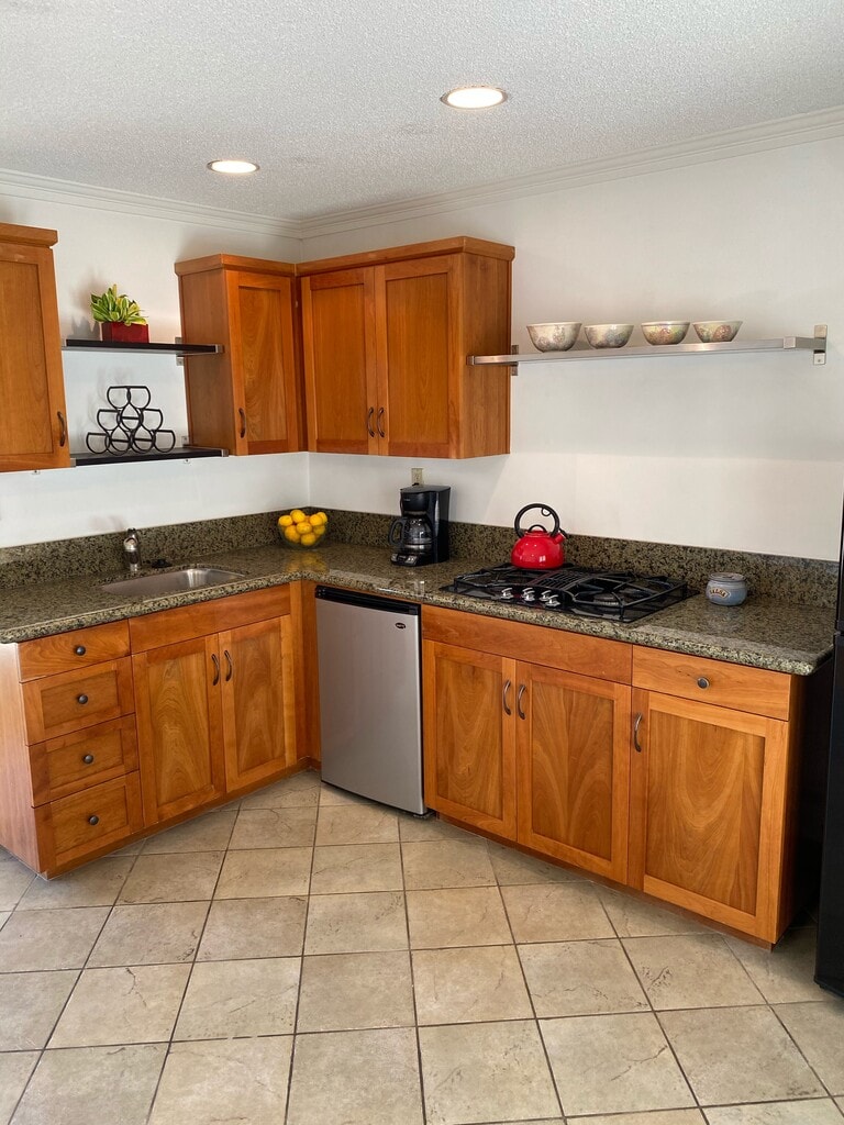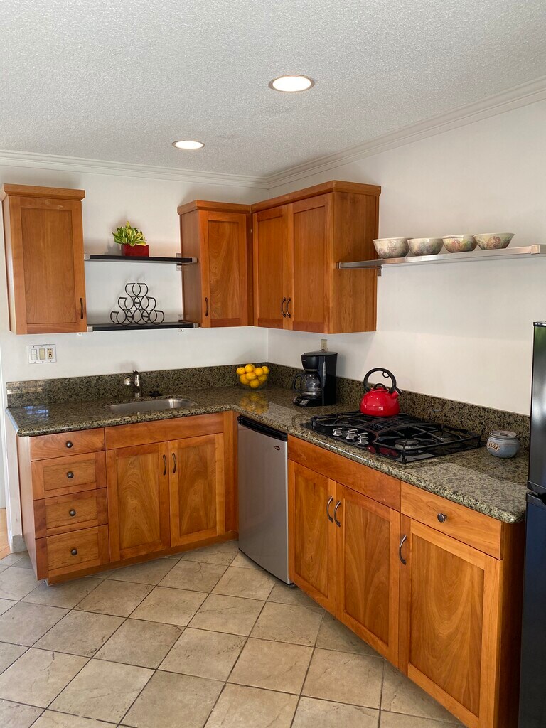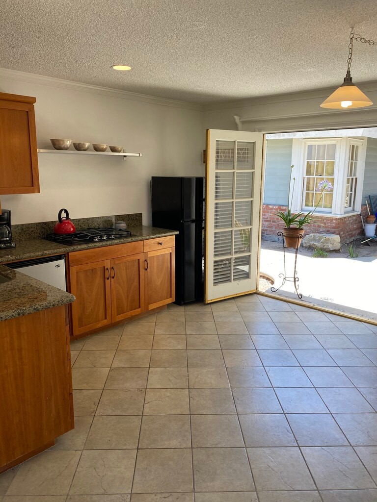 One bedroom, one bath guest house on quiet MB cul-de-sac. Guest house is a spacious 600 sq ft, quiet & private. French doors at entry and opening off living room and bedroom to small rear patio. Kitchen has tile floors, granite counter tops, lots of cabinet space, fridge and gas cook top. Living room and bedroom have hardwood floors. Rent includes utilities and basic TV cable, gardener, water & trash. Parking is on the street but is always available. Single tenant only No smoking Month to Month lease No pets ( we have a dog ) Location is close to shopping, beaches, restaurants and LAX is minutes away