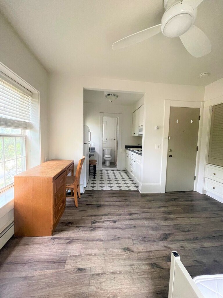 Sunny studio apartment with wood flooring throughout. Updated bathroom and kitchen. Utilities not included: Electric, Gas, Wi-Fi Utilities included: Water, Trash, Recycling *Furniture in photo may not represent the provided set. We are a student housing focused management company.