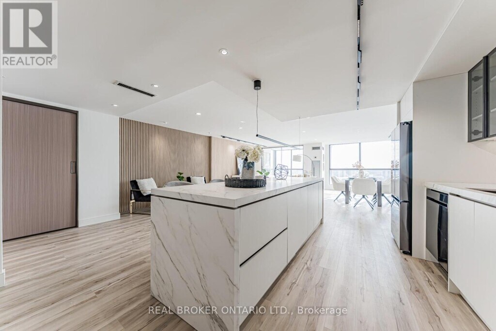 Bright & Modern 2-Bedroom Suite with Sunroom at 131 Torresdale Ave: Discover 1,465 SF of fully renovated living space in this thoughtfully modernized 2-bedroom + sunroom suite with smooth ceilings,pot lights,and large south-facing windows that fill every room with natural light. The open-concept kitchen features sintered stone counters,custom backsplash,oversized waterfall island,brand-new built-in appliances & abundant cabinetry,flowing seamlessly into the dining & living areas,which extend to a bright sunroom with open views. The primary bedroom includes a walk-in closet with custom organizers & a 3-piece ensuite,while the second bedroom offers a large closet with soft-close sliding doors. Enjoy a 4-piece hallway bathroom,ensuite laundry with stone folding counter,huge in-suite storage & 1 underground parking space. Building amenities include a party room,outdoor pool,indoor whirlpool,sauna & exercise room. Minutes from Bathurst St with dining,shopping,banks & local services,parks within walking distance,and a TTC bus stop nearby make this an ideal blend of comfort & convenience. Book a visit today to see this stunning suite in person! (id:52069) ID#: 2168397